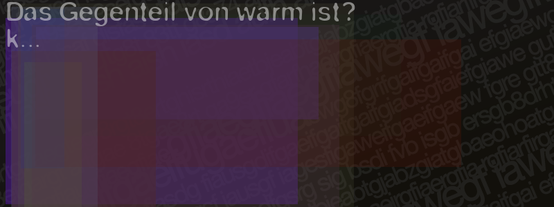 Die Visuelle Bestätigung hilft dabei automatische Spambots und Scripte von den Diensten dieses Forums abzuhalten. Derartige Scripte sind normalerweise nicht in der Lage den untenstehenden Code zu erkennen. Bitte geben Sie also in das untenstehende Feld die Buchstaben und Zahlen ein, die Sie in dem Bild erkennen können oder beantworten Sie die angezeigte Frage.