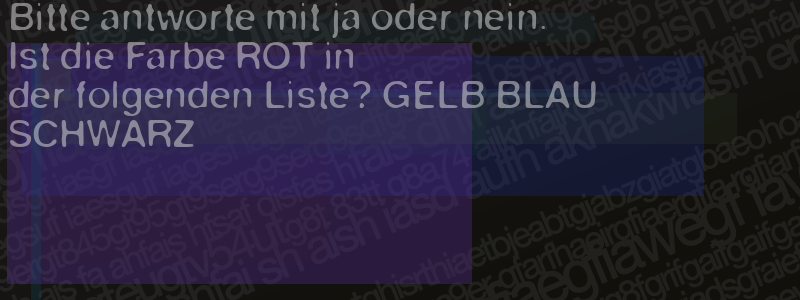 Die Visuelle Bestätigung hilft dabei automatische Spambots und Scripte von den Diensten dieses Forums abzuhalten. Derartige Scripte sind normalerweise nicht in der Lage den untenstehenden Code zu erkennen. Bitte geben Sie also in das untenstehende Feld die Buchstaben und Zahlen ein, die Sie in dem Bild erkennen können oder beantworten Sie die angezeigte Frage.