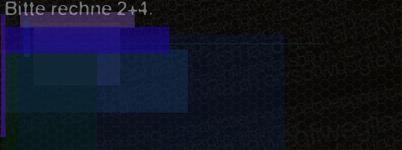 Die Visuelle Bestätigung hilft dabei automatische Spambots und Scripte von den Diensten dieses Forums abzuhalten. Derartige Scripte sind normalerweise nicht in der Lage den untenstehenden Code zu erkennen. Bitte geben Sie also in das untenstehende Feld die Buchstaben und Zahlen ein, die Sie in dem Bild erkennen können oder beantworten Sie die angezeigte Frage.
