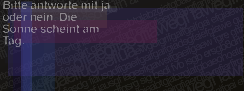 Die Visuelle Bestätigung hilft dabei automatische Spambots und Scripte von den Diensten dieses Forums abzuhalten. Derartige Scripte sind normalerweise nicht in der Lage den untenstehenden Code zu erkennen. Bitte geben Sie also in das untenstehende Feld die Buchstaben und Zahlen ein, die Sie in dem Bild erkennen können oder beantworten Sie die angezeigte Frage.