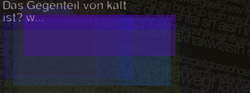Die Visuelle Bestätigung hilft dabei automatische Spambots und Scripte von den Diensten dieses Forums abzuhalten. Derartige Scripte sind normalerweise nicht in der Lage den untenstehenden Code zu erkennen. Bitte geben Sie also in das untenstehende Feld die Buchstaben und Zahlen ein, die Sie in dem Bild erkennen können oder beantworten Sie die angezeigte Frage.