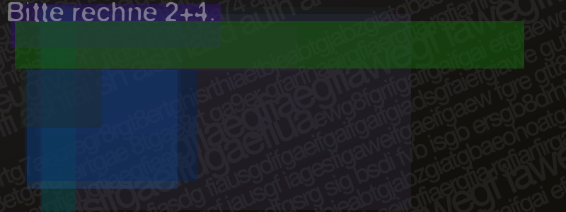 Die Visuelle Bestätigung hilft dabei automatische Spambots und Scripte von den Diensten dieses Forums abzuhalten. Derartige Scripte sind normalerweise nicht in der Lage den untenstehenden Code zu erkennen. Bitte geben Sie also in das untenstehende Feld die Buchstaben und Zahlen ein, die Sie in dem Bild erkennen können oder beantworten Sie die angezeigte Frage.