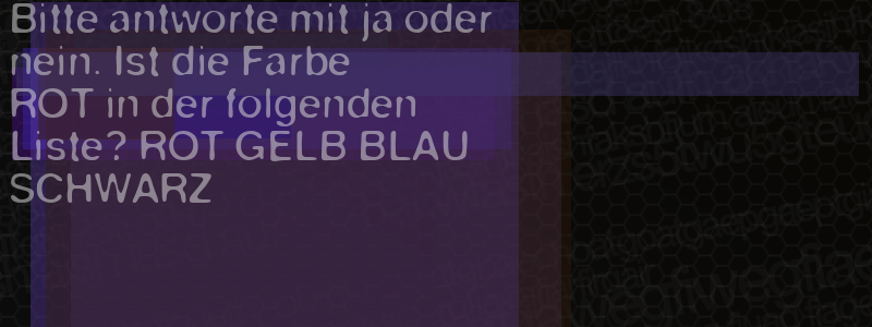 Die Visuelle Bestätigung hilft dabei automatische Spambots und Scripte von den Diensten dieses Forums abzuhalten. Derartige Scripte sind normalerweise nicht in der Lage den untenstehenden Code zu erkennen. Bitte geben Sie also in das untenstehende Feld die Buchstaben und Zahlen ein, die Sie in dem Bild erkennen können oder beantworten Sie die angezeigte Frage.
