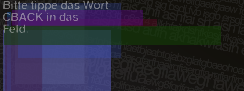 Die Visuelle Bestätigung hilft dabei automatische Spambots und Scripte von den Diensten dieses Forums abzuhalten. Derartige Scripte sind normalerweise nicht in der Lage den untenstehenden Code zu erkennen. Bitte geben Sie also in das untenstehende Feld die Buchstaben und Zahlen ein, die Sie in dem Bild erkennen können oder beantworten Sie die angezeigte Frage.