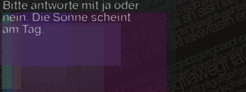 Die Visuelle Bestätigung hilft dabei automatische Spambots und Scripte von den Diensten dieses Forums abzuhalten. Derartige Scripte sind normalerweise nicht in der Lage den untenstehenden Code zu erkennen. Bitte geben Sie also in das untenstehende Feld die Buchstaben und Zahlen ein, die Sie in dem Bild erkennen können oder beantworten Sie die angezeigte Frage.