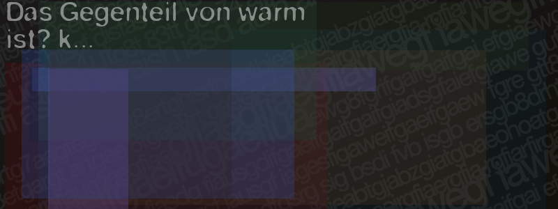 Die Visuelle Bestätigung hilft dabei automatische Spambots und Scripte von den Diensten dieses Forums abzuhalten. Derartige Scripte sind normalerweise nicht in der Lage den untenstehenden Code zu erkennen. Bitte geben Sie also in das untenstehende Feld die Buchstaben und Zahlen ein, die Sie in dem Bild erkennen können oder beantworten Sie die angezeigte Frage.