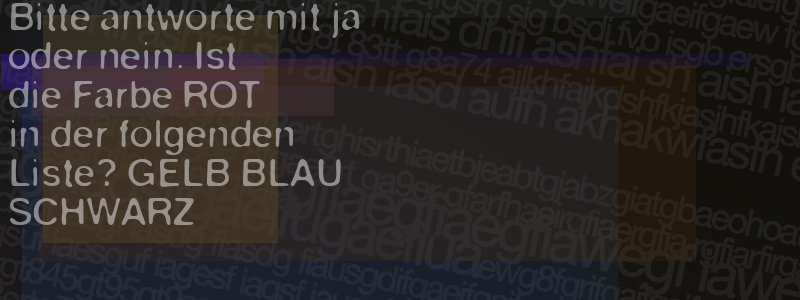 Die Visuelle Bestätigung hilft dabei automatische Spambots und Scripte von den Diensten dieses Forums abzuhalten. Derartige Scripte sind normalerweise nicht in der Lage den untenstehenden Code zu erkennen. Bitte geben Sie also in das untenstehende Feld die Buchstaben und Zahlen ein, die Sie in dem Bild erkennen können oder beantworten Sie die angezeigte Frage.