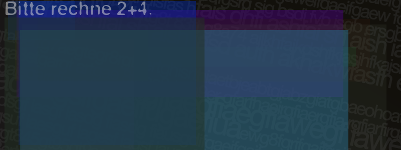 Die Visuelle Bestätigung hilft dabei automatische Spambots und Scripte von den Diensten dieses Forums abzuhalten. Derartige Scripte sind normalerweise nicht in der Lage den untenstehenden Code zu erkennen. Bitte geben Sie also in das untenstehende Feld die Buchstaben und Zahlen ein, die Sie in dem Bild erkennen können oder beantworten Sie die angezeigte Frage.