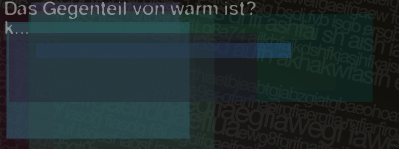 Die Visuelle Bestätigung hilft dabei automatische Spambots und Scripte von den Diensten dieses Forums abzuhalten. Derartige Scripte sind normalerweise nicht in der Lage den untenstehenden Code zu erkennen. Bitte geben Sie also in das untenstehende Feld die Buchstaben und Zahlen ein, die Sie in dem Bild erkennen können oder beantworten Sie die angezeigte Frage.