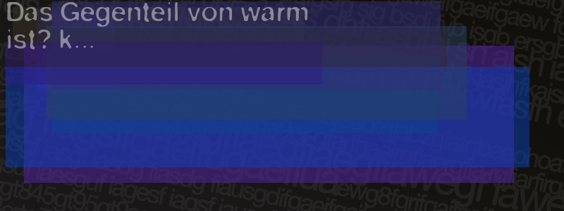 Die Visuelle Bestätigung hilft dabei automatische Spambots und Scripte von den Diensten dieses Forums abzuhalten. Derartige Scripte sind normalerweise nicht in der Lage den untenstehenden Code zu erkennen. Bitte geben Sie also in das untenstehende Feld die Buchstaben und Zahlen ein, die Sie in dem Bild erkennen können oder beantworten Sie die angezeigte Frage.