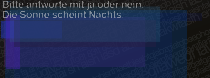 Die Visuelle Bestätigung hilft dabei automatische Spambots und Scripte von den Diensten dieses Forums abzuhalten. Derartige Scripte sind normalerweise nicht in der Lage den untenstehenden Code zu erkennen. Bitte geben Sie also in das untenstehende Feld die Buchstaben und Zahlen ein, die Sie in dem Bild erkennen können oder beantworten Sie die angezeigte Frage.