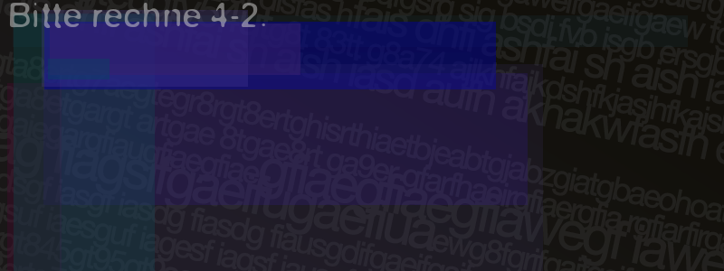 Die Visuelle Bestätigung hilft dabei automatische Spambots und Scripte von den Diensten dieses Forums abzuhalten. Derartige Scripte sind normalerweise nicht in der Lage den untenstehenden Code zu erkennen. Bitte geben Sie also in das untenstehende Feld die Buchstaben und Zahlen ein, die Sie in dem Bild erkennen können oder beantworten Sie die angezeigte Frage.
