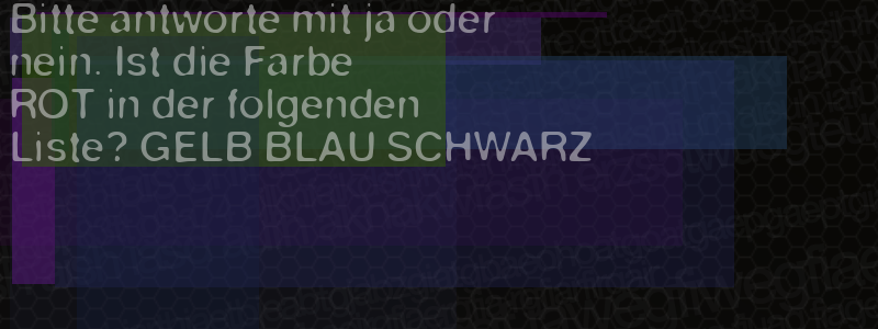 Die Visuelle Bestätigung hilft dabei automatische Spambots und Scripte von den Diensten dieses Forums abzuhalten. Derartige Scripte sind normalerweise nicht in der Lage den untenstehenden Code zu erkennen. Bitte geben Sie also in das untenstehende Feld die Buchstaben und Zahlen ein, die Sie in dem Bild erkennen können oder beantworten Sie die angezeigte Frage.