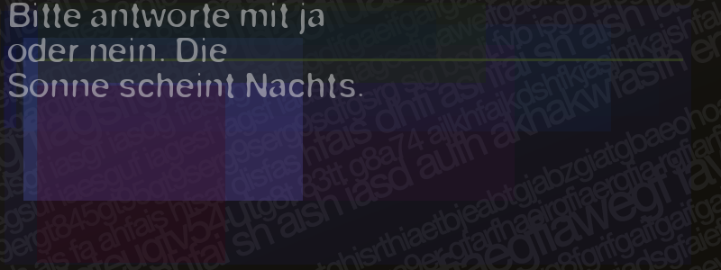 Die Visuelle Bestätigung hilft dabei automatische Spambots und Scripte von den Diensten dieses Forums abzuhalten. Derartige Scripte sind normalerweise nicht in der Lage den untenstehenden Code zu erkennen. Bitte geben Sie also in das untenstehende Feld die Buchstaben und Zahlen ein, die Sie in dem Bild erkennen können oder beantworten Sie die angezeigte Frage.