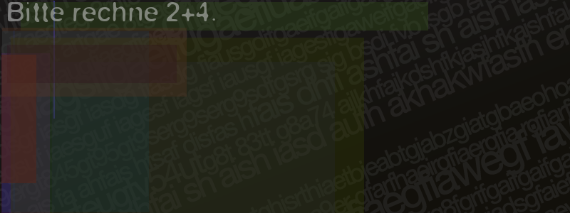 Die Visuelle Bestätigung hilft dabei automatische Spambots und Scripte von den Diensten dieses Forums abzuhalten. Derartige Scripte sind normalerweise nicht in der Lage den untenstehenden Code zu erkennen. Bitte geben Sie also in das untenstehende Feld die Buchstaben und Zahlen ein, die Sie in dem Bild erkennen können oder beantworten Sie die angezeigte Frage.