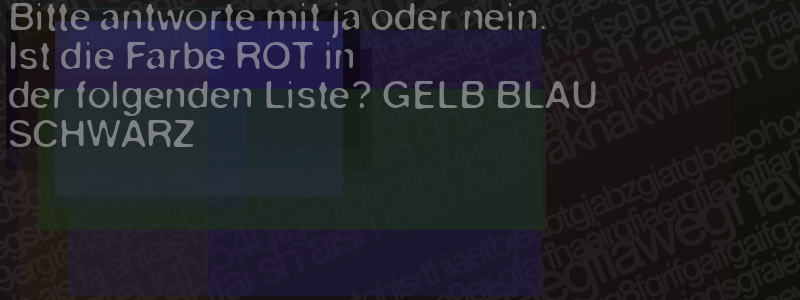 Die Visuelle Bestätigung hilft dabei automatische Spambots und Scripte von den Diensten dieses Forums abzuhalten. Derartige Scripte sind normalerweise nicht in der Lage den untenstehenden Code zu erkennen. Bitte geben Sie also in das untenstehende Feld die Buchstaben und Zahlen ein, die Sie in dem Bild erkennen können oder beantworten Sie die angezeigte Frage.