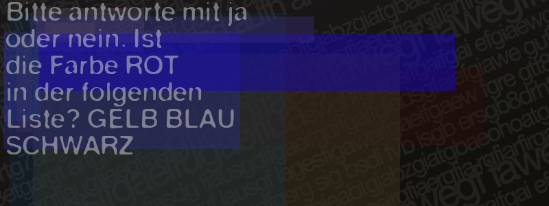 Die Visuelle Bestätigung hilft dabei automatische Spambots und Scripte von den Diensten dieses Forums abzuhalten. Derartige Scripte sind normalerweise nicht in der Lage den untenstehenden Code zu erkennen. Bitte geben Sie also in das untenstehende Feld die Buchstaben und Zahlen ein, die Sie in dem Bild erkennen können oder beantworten Sie die angezeigte Frage.