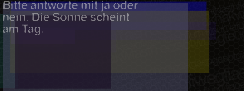 Die Visuelle Bestätigung hilft dabei automatische Spambots und Scripte von den Diensten dieses Forums abzuhalten. Derartige Scripte sind normalerweise nicht in der Lage den untenstehenden Code zu erkennen. Bitte geben Sie also in das untenstehende Feld die Buchstaben und Zahlen ein, die Sie in dem Bild erkennen können oder beantworten Sie die angezeigte Frage.