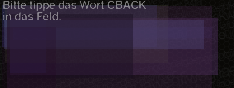 Die Visuelle Bestätigung hilft dabei automatische Spambots und Scripte von den Diensten dieses Forums abzuhalten. Derartige Scripte sind normalerweise nicht in der Lage den untenstehenden Code zu erkennen. Bitte geben Sie also in das untenstehende Feld die Buchstaben und Zahlen ein, die Sie in dem Bild erkennen können oder beantworten Sie die angezeigte Frage.
