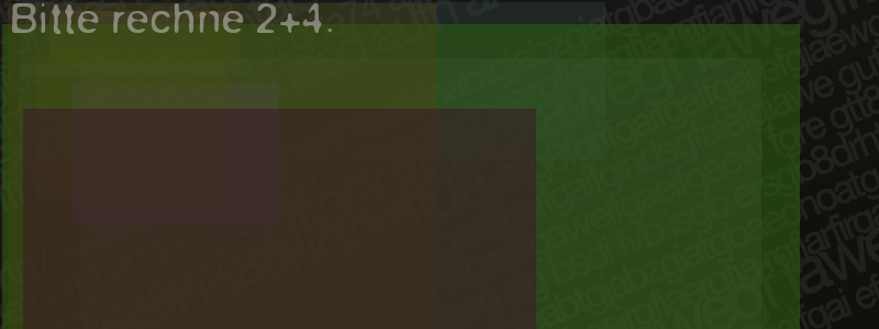 Die Visuelle Bestätigung hilft dabei automatische Spambots und Scripte von den Diensten dieses Forums abzuhalten. Derartige Scripte sind normalerweise nicht in der Lage den untenstehenden Code zu erkennen. Bitte geben Sie also in das untenstehende Feld die Buchstaben und Zahlen ein, die Sie in dem Bild erkennen können oder beantworten Sie die angezeigte Frage.