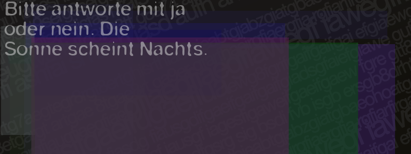 Die Visuelle Bestätigung hilft dabei automatische Spambots und Scripte von den Diensten dieses Forums abzuhalten. Derartige Scripte sind normalerweise nicht in der Lage den untenstehenden Code zu erkennen. Bitte geben Sie also in das untenstehende Feld die Buchstaben und Zahlen ein, die Sie in dem Bild erkennen können oder beantworten Sie die angezeigte Frage.