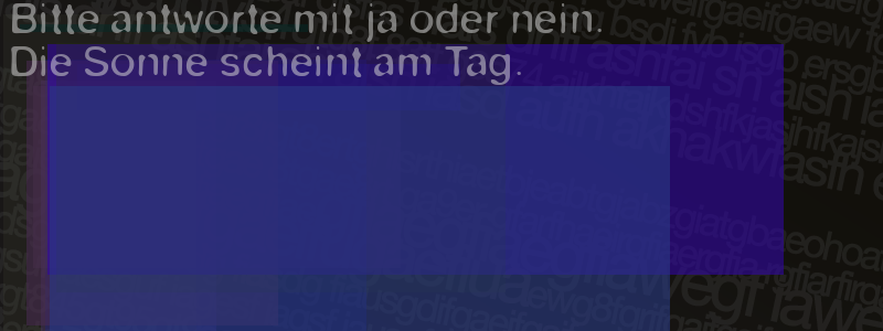 Die Visuelle Bestätigung hilft dabei automatische Spambots und Scripte von den Diensten dieses Forums abzuhalten. Derartige Scripte sind normalerweise nicht in der Lage den untenstehenden Code zu erkennen. Bitte geben Sie also in das untenstehende Feld die Buchstaben und Zahlen ein, die Sie in dem Bild erkennen können oder beantworten Sie die angezeigte Frage.