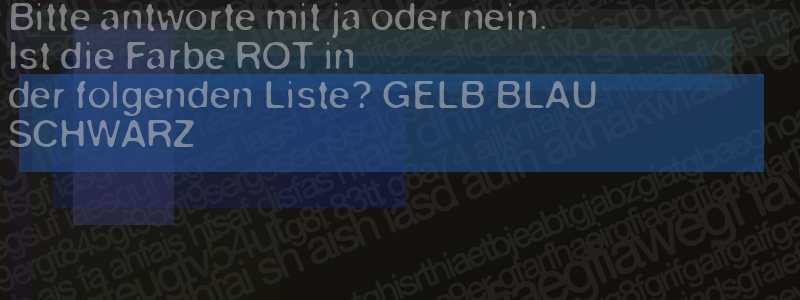 Die Visuelle Bestätigung hilft dabei automatische Spambots und Scripte von den Diensten dieses Forums abzuhalten. Derartige Scripte sind normalerweise nicht in der Lage den untenstehenden Code zu erkennen. Bitte geben Sie also in das untenstehende Feld die Buchstaben und Zahlen ein, die Sie in dem Bild erkennen können oder beantworten Sie die angezeigte Frage.