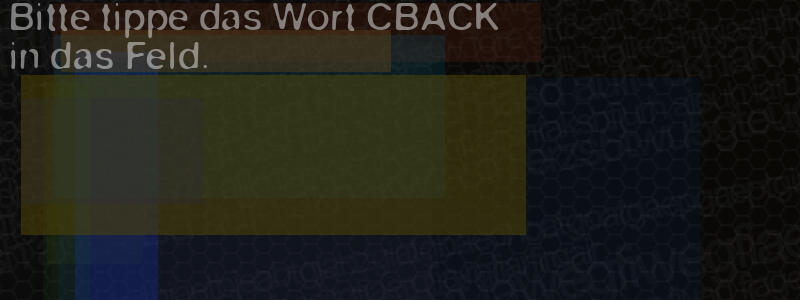 Die Visuelle Bestätigung hilft dabei automatische Spambots und Scripte von den Diensten dieses Forums abzuhalten. Derartige Scripte sind normalerweise nicht in der Lage den untenstehenden Code zu erkennen. Bitte geben Sie also in das untenstehende Feld die Buchstaben und Zahlen ein, die Sie in dem Bild erkennen können oder beantworten Sie die angezeigte Frage.