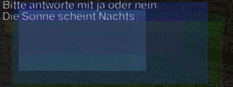 Die Visuelle Bestätigung hilft dabei automatische Spambots und Scripte von den Diensten dieses Forums abzuhalten. Derartige Scripte sind normalerweise nicht in der Lage den untenstehenden Code zu erkennen. Bitte geben Sie also in das untenstehende Feld die Buchstaben und Zahlen ein, die Sie in dem Bild erkennen können oder beantworten Sie die angezeigte Frage.