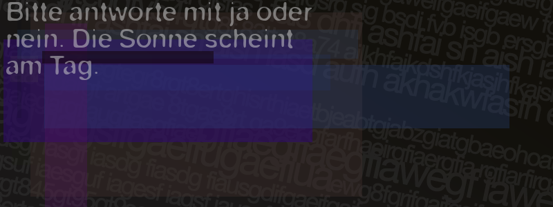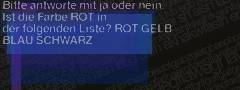 Die Visuelle Bestätigung hilft dabei automatische Spambots und Scripte von den Diensten dieses Forums abzuhalten. Derartige Scripte sind normalerweise nicht in der Lage den untenstehenden Code zu erkennen. Bitte geben Sie also in das untenstehende Feld die Buchstaben und Zahlen ein, die Sie in dem Bild erkennen können oder beantworten Sie die angezeigte Frage.