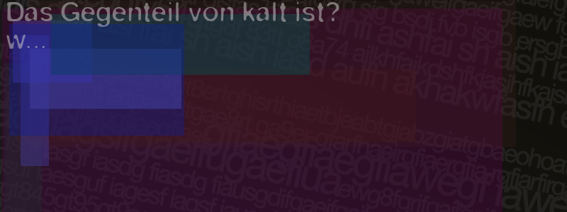 Die Visuelle Bestätigung hilft dabei automatische Spambots und Scripte von den Diensten dieses Forums abzuhalten. Derartige Scripte sind normalerweise nicht in der Lage den untenstehenden Code zu erkennen. Bitte geben Sie also in das untenstehende Feld die Buchstaben und Zahlen ein, die Sie in dem Bild erkennen können oder beantworten Sie die angezeigte Frage.