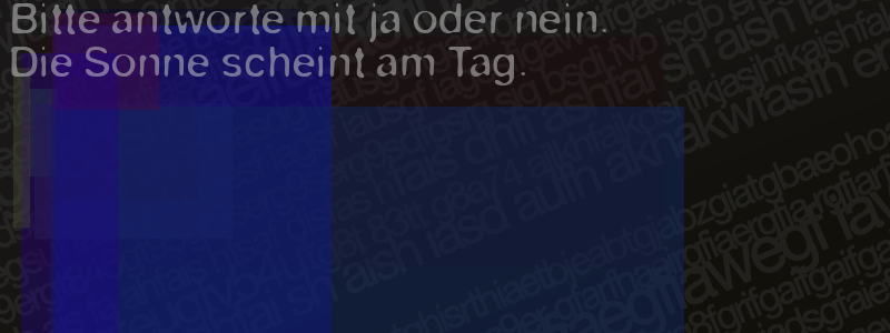 Die Visuelle Bestätigung hilft dabei automatische Spambots und Scripte von den Diensten dieses Forums abzuhalten. Derartige Scripte sind normalerweise nicht in der Lage den untenstehenden Code zu erkennen. Bitte geben Sie also in das untenstehende Feld die Buchstaben und Zahlen ein, die Sie in dem Bild erkennen können oder beantworten Sie die angezeigte Frage.