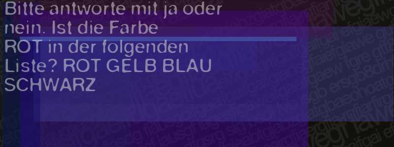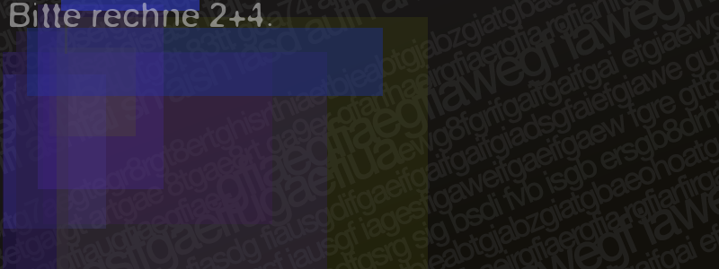 Die Visuelle Bestätigung hilft dabei automatische Spambots und Scripte von den Diensten dieses Forums abzuhalten. Derartige Scripte sind normalerweise nicht in der Lage den untenstehenden Code zu erkennen. Bitte geben Sie also in das untenstehende Feld die Buchstaben und Zahlen ein, die Sie in dem Bild erkennen können oder beantworten Sie die angezeigte Frage.