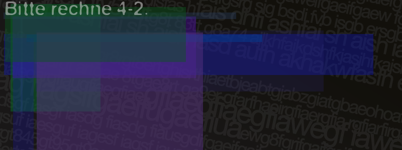 Die Visuelle Bestätigung hilft dabei automatische Spambots und Scripte von den Diensten dieses Forums abzuhalten. Derartige Scripte sind normalerweise nicht in der Lage den untenstehenden Code zu erkennen. Bitte geben Sie also in das untenstehende Feld die Buchstaben und Zahlen ein, die Sie in dem Bild erkennen können oder beantworten Sie die angezeigte Frage.