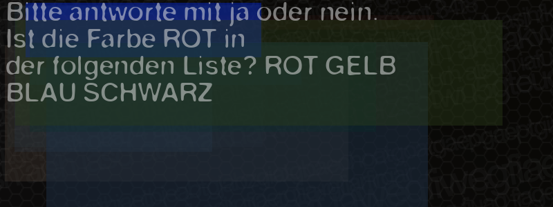 Die Visuelle Bestätigung hilft dabei automatische Spambots und Scripte von den Diensten dieses Forums abzuhalten. Derartige Scripte sind normalerweise nicht in der Lage den untenstehenden Code zu erkennen. Bitte geben Sie also in das untenstehende Feld die Buchstaben und Zahlen ein, die Sie in dem Bild erkennen können oder beantworten Sie die angezeigte Frage.