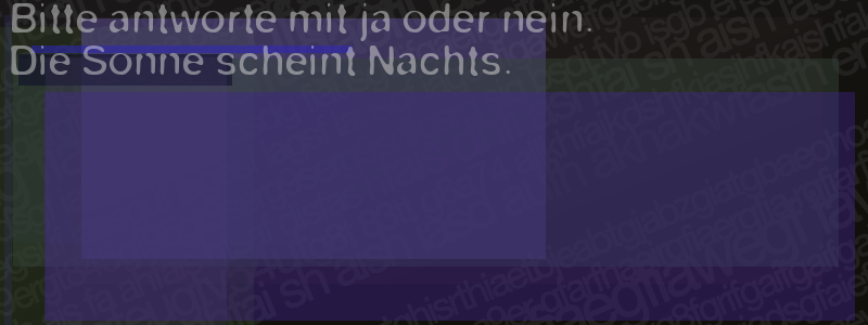 Die Visuelle Bestätigung hilft dabei automatische Spambots und Scripte von den Diensten dieses Forums abzuhalten. Derartige Scripte sind normalerweise nicht in der Lage den untenstehenden Code zu erkennen. Bitte geben Sie also in das untenstehende Feld die Buchstaben und Zahlen ein, die Sie in dem Bild erkennen können oder beantworten Sie die angezeigte Frage.
