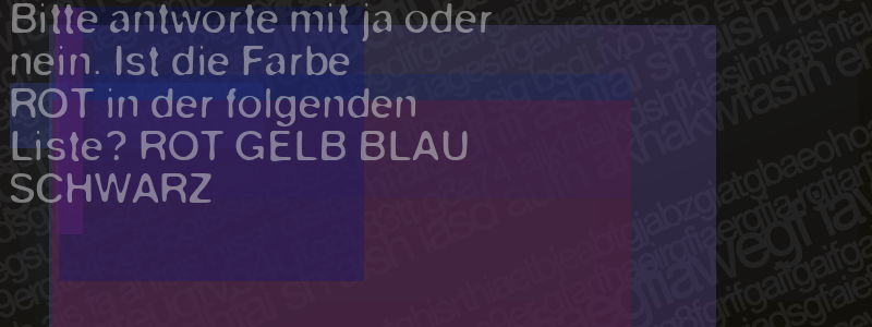 Die Visuelle Bestätigung hilft dabei automatische Spambots und Scripte von den Diensten dieses Forums abzuhalten. Derartige Scripte sind normalerweise nicht in der Lage den untenstehenden Code zu erkennen. Bitte geben Sie also in das untenstehende Feld die Buchstaben und Zahlen ein, die Sie in dem Bild erkennen können oder beantworten Sie die angezeigte Frage.