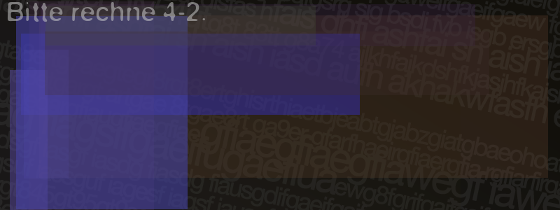Die Visuelle Bestätigung hilft dabei automatische Spambots und Scripte von den Diensten dieses Forums abzuhalten. Derartige Scripte sind normalerweise nicht in der Lage den untenstehenden Code zu erkennen. Bitte geben Sie also in das untenstehende Feld die Buchstaben und Zahlen ein, die Sie in dem Bild erkennen können oder beantworten Sie die angezeigte Frage.