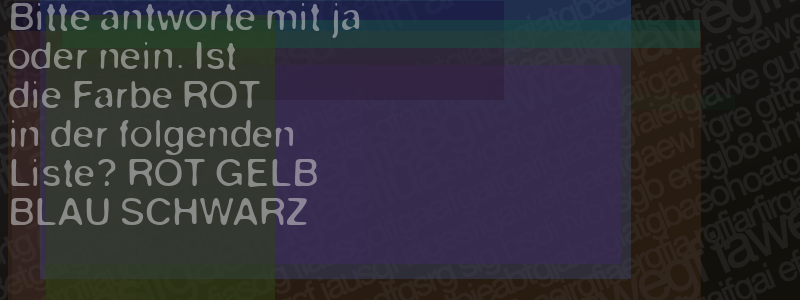 Die Visuelle Bestätigung hilft dabei automatische Spambots und Scripte von den Diensten dieses Forums abzuhalten. Derartige Scripte sind normalerweise nicht in der Lage den untenstehenden Code zu erkennen. Bitte geben Sie also in das untenstehende Feld die Buchstaben und Zahlen ein, die Sie in dem Bild erkennen können oder beantworten Sie die angezeigte Frage.