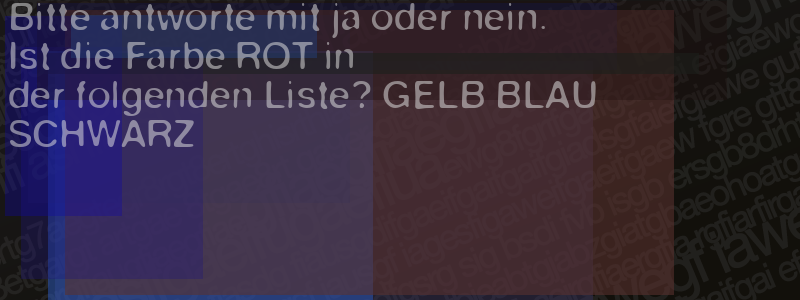 Die Visuelle Bestätigung hilft dabei automatische Spambots und Scripte von den Diensten dieses Forums abzuhalten. Derartige Scripte sind normalerweise nicht in der Lage den untenstehenden Code zu erkennen. Bitte geben Sie also in das untenstehende Feld die Buchstaben und Zahlen ein, die Sie in dem Bild erkennen können oder beantworten Sie die angezeigte Frage.