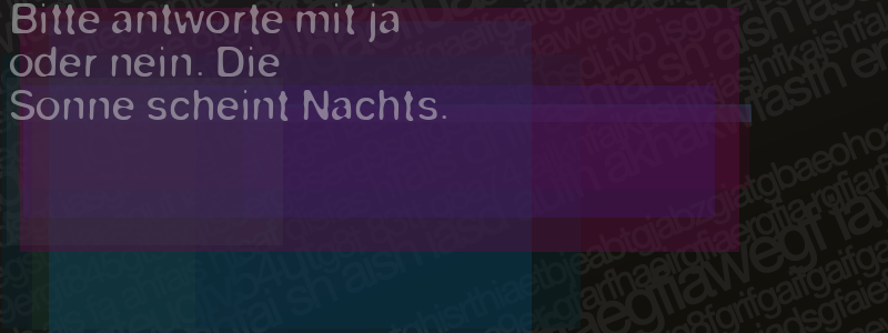 Die Visuelle Bestätigung hilft dabei automatische Spambots und Scripte von den Diensten dieses Forums abzuhalten. Derartige Scripte sind normalerweise nicht in der Lage den untenstehenden Code zu erkennen. Bitte geben Sie also in das untenstehende Feld die Buchstaben und Zahlen ein, die Sie in dem Bild erkennen können oder beantworten Sie die angezeigte Frage.