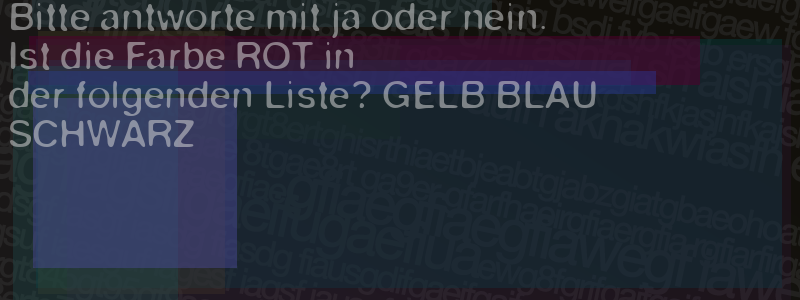 Die Visuelle Bestätigung hilft dabei automatische Spambots und Scripte von den Diensten dieses Forums abzuhalten. Derartige Scripte sind normalerweise nicht in der Lage den untenstehenden Code zu erkennen. Bitte geben Sie also in das untenstehende Feld die Buchstaben und Zahlen ein, die Sie in dem Bild erkennen können oder beantworten Sie die angezeigte Frage.