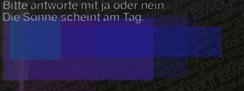 Die Visuelle Bestätigung hilft dabei automatische Spambots und Scripte von den Diensten dieses Forums abzuhalten. Derartige Scripte sind normalerweise nicht in der Lage den untenstehenden Code zu erkennen. Bitte geben Sie also in das untenstehende Feld die Buchstaben und Zahlen ein, die Sie in dem Bild erkennen können oder beantworten Sie die angezeigte Frage.