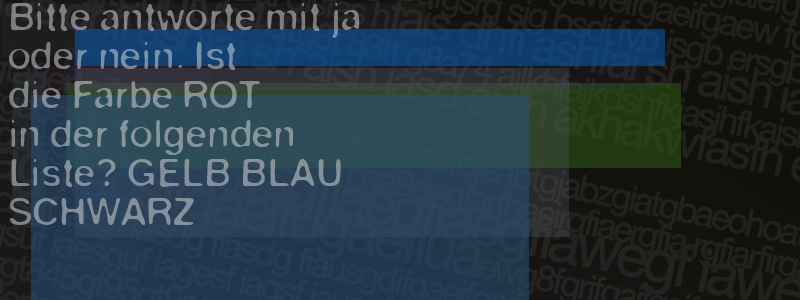 Die Visuelle Bestätigung hilft dabei automatische Spambots und Scripte von den Diensten dieses Forums abzuhalten. Derartige Scripte sind normalerweise nicht in der Lage den untenstehenden Code zu erkennen. Bitte geben Sie also in das untenstehende Feld die Buchstaben und Zahlen ein, die Sie in dem Bild erkennen können oder beantworten Sie die angezeigte Frage.