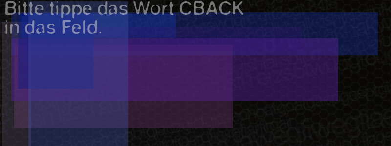 Die Visuelle Bestätigung hilft dabei automatische Spambots und Scripte von den Diensten dieses Forums abzuhalten. Derartige Scripte sind normalerweise nicht in der Lage den untenstehenden Code zu erkennen. Bitte geben Sie also in das untenstehende Feld die Buchstaben und Zahlen ein, die Sie in dem Bild erkennen können oder beantworten Sie die angezeigte Frage.