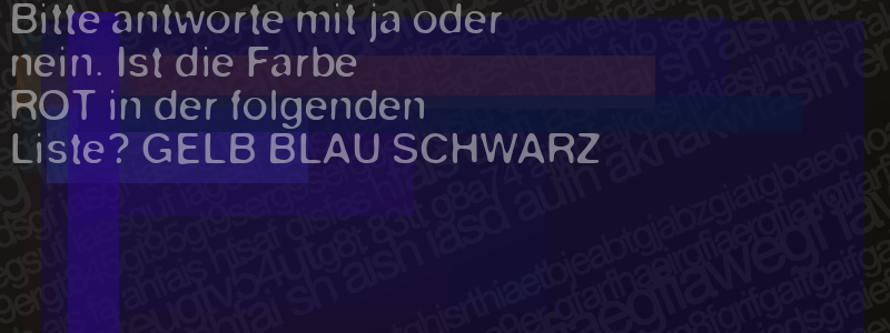 Die Visuelle Bestätigung hilft dabei automatische Spambots und Scripte von den Diensten dieses Forums abzuhalten. Derartige Scripte sind normalerweise nicht in der Lage den untenstehenden Code zu erkennen. Bitte geben Sie also in das untenstehende Feld die Buchstaben und Zahlen ein, die Sie in dem Bild erkennen können oder beantworten Sie die angezeigte Frage.