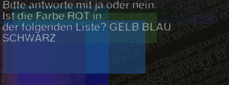 Die Visuelle Bestätigung hilft dabei automatische Spambots und Scripte von den Diensten dieses Forums abzuhalten. Derartige Scripte sind normalerweise nicht in der Lage den untenstehenden Code zu erkennen. Bitte geben Sie also in das untenstehende Feld die Buchstaben und Zahlen ein, die Sie in dem Bild erkennen können oder beantworten Sie die angezeigte Frage.