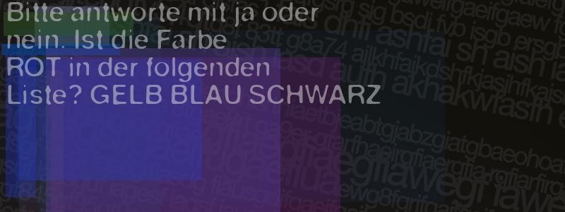 Die Visuelle Bestätigung hilft dabei automatische Spambots und Scripte von den Diensten dieses Forums abzuhalten. Derartige Scripte sind normalerweise nicht in der Lage den untenstehenden Code zu erkennen. Bitte geben Sie also in das untenstehende Feld die Buchstaben und Zahlen ein, die Sie in dem Bild erkennen können oder beantworten Sie die angezeigte Frage.