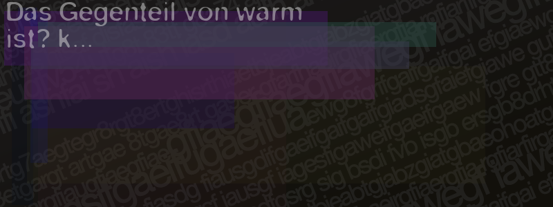 Die Visuelle Bestätigung hilft dabei automatische Spambots und Scripte von den Diensten dieses Forums abzuhalten. Derartige Scripte sind normalerweise nicht in der Lage den untenstehenden Code zu erkennen. Bitte geben Sie also in das untenstehende Feld die Buchstaben und Zahlen ein, die Sie in dem Bild erkennen können oder beantworten Sie die angezeigte Frage.