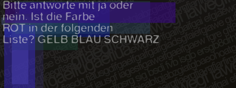 Die Visuelle Bestätigung hilft dabei automatische Spambots und Scripte von den Diensten dieses Forums abzuhalten. Derartige Scripte sind normalerweise nicht in der Lage den untenstehenden Code zu erkennen. Bitte geben Sie also in das untenstehende Feld die Buchstaben und Zahlen ein, die Sie in dem Bild erkennen können oder beantworten Sie die angezeigte Frage.